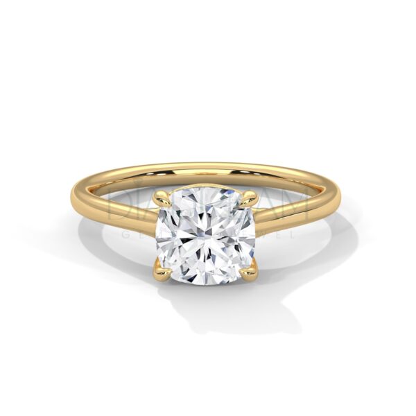 Our cushion cut moissanite ring is a stunning piece of jewelry that exudes timeless elegance. Featuring a 1.50-carat (approx.) cushion-cut moissanite, this ring is a symbol of sophistication and refined style. The colorless, VVS clarity, and ideal cut of the moissanite ensure a breathtaking display of light and fire.