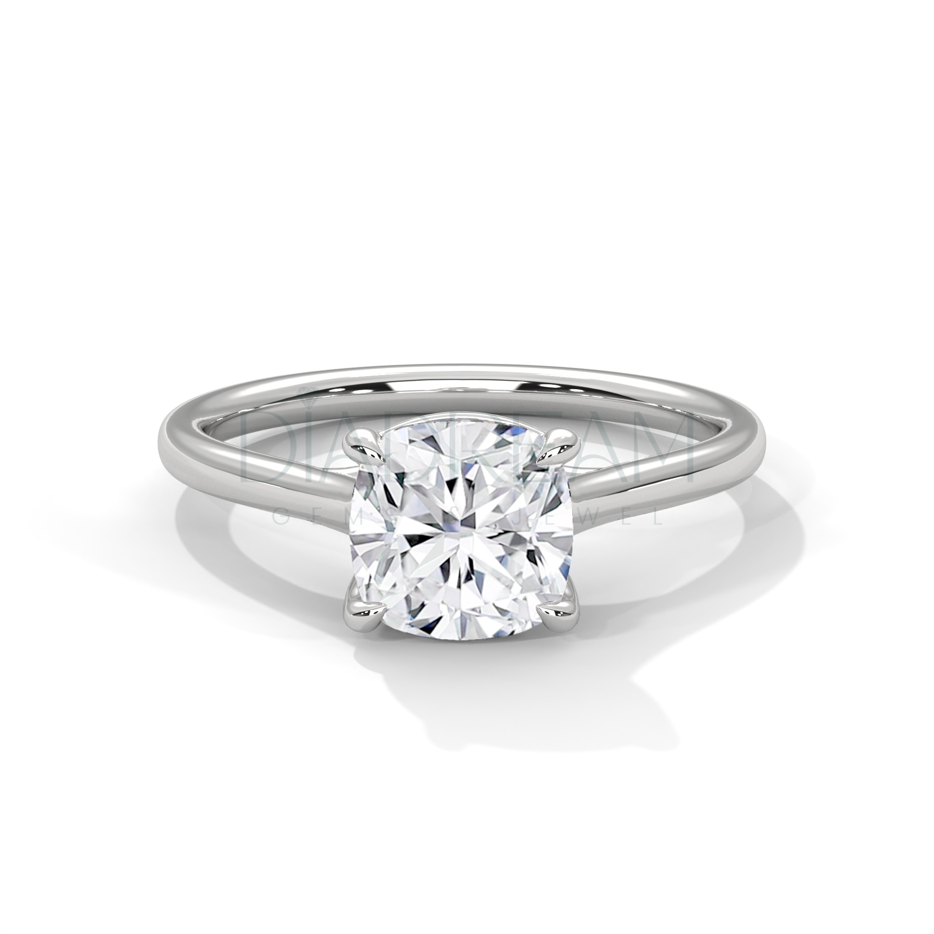Choose your preferred metal, tone, and band width to create a truly personalized cushion cut moissanite ring. Our skilled artisans will meticulously craft your ring to your exact specifications.