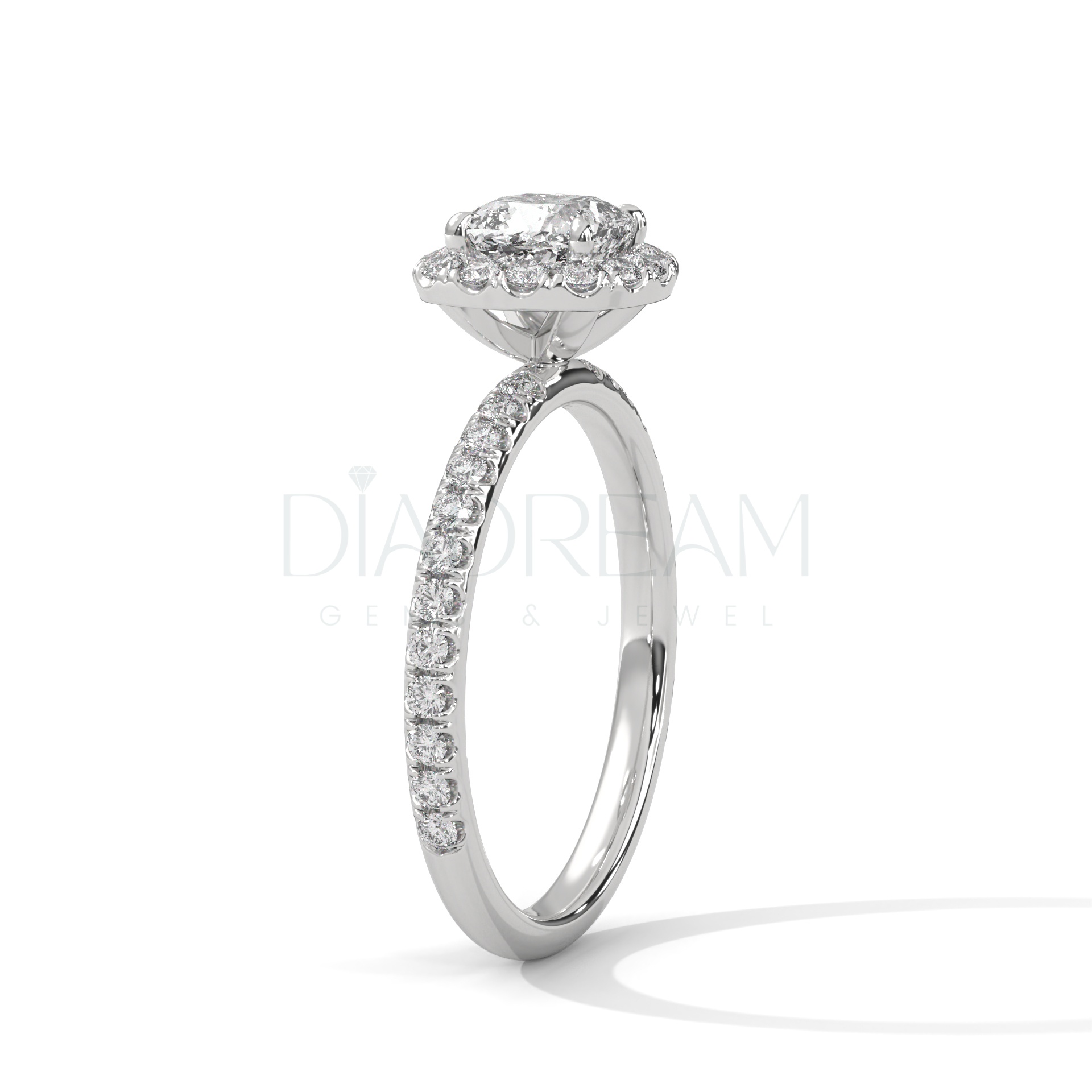 Adding a touch of intricate beauty are the round-cut side stones, designed to complement the centerpiece perfectly. These stones also feature a colorless appearance with VVS clarity, enhancing the overall allure of the ring.