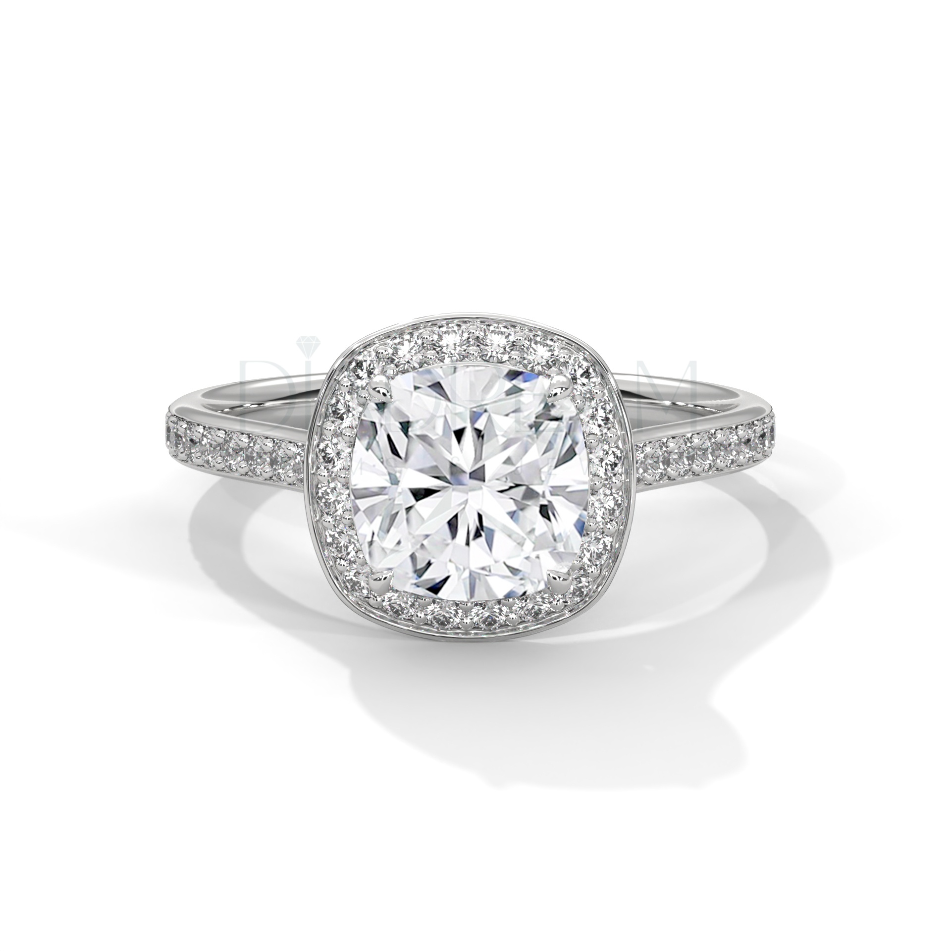 Choose your preferred metal, tone, and band width to create a truly personalized 2 carat cushion cut moissanite ring. Our skilled artisans will meticulously craft your ring to your exact specifications, ensuring a perfect fit and finish.