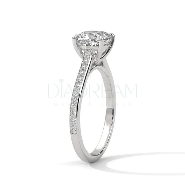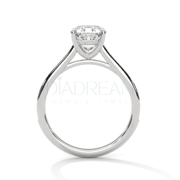 Indulge in the brilliance of our 2 carat cushion cut moissanite ring, a masterpiece of craftsmanship and elegance. Showcasing a dazzling 2.00 carat (approx.) cushion-cut moissanite, this ring is a symbol of timeless sophistication and refined style. The colorless, VVS clarity, and ideal cut of the moissanite ensure a breathtaking display of light and fire, creating a mesmerizing spectacle of brilliance.