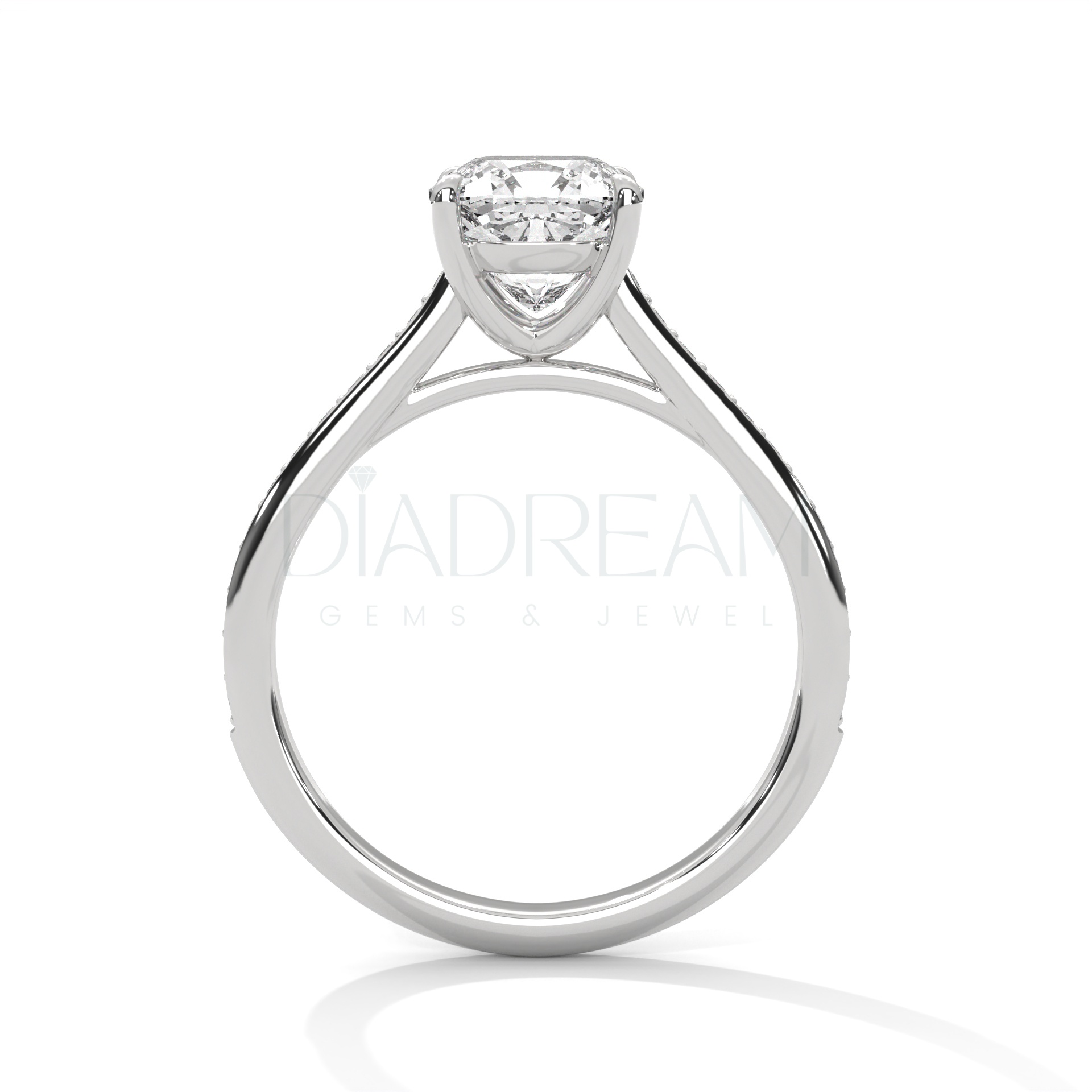 Choose your preferred metal, tone, and band width to create a truly personalized 2 carat cushion cut moissanite ring. Our skilled artisans will meticulously craft your ring to your exact specifications, ensuring a perfect fit and finish.