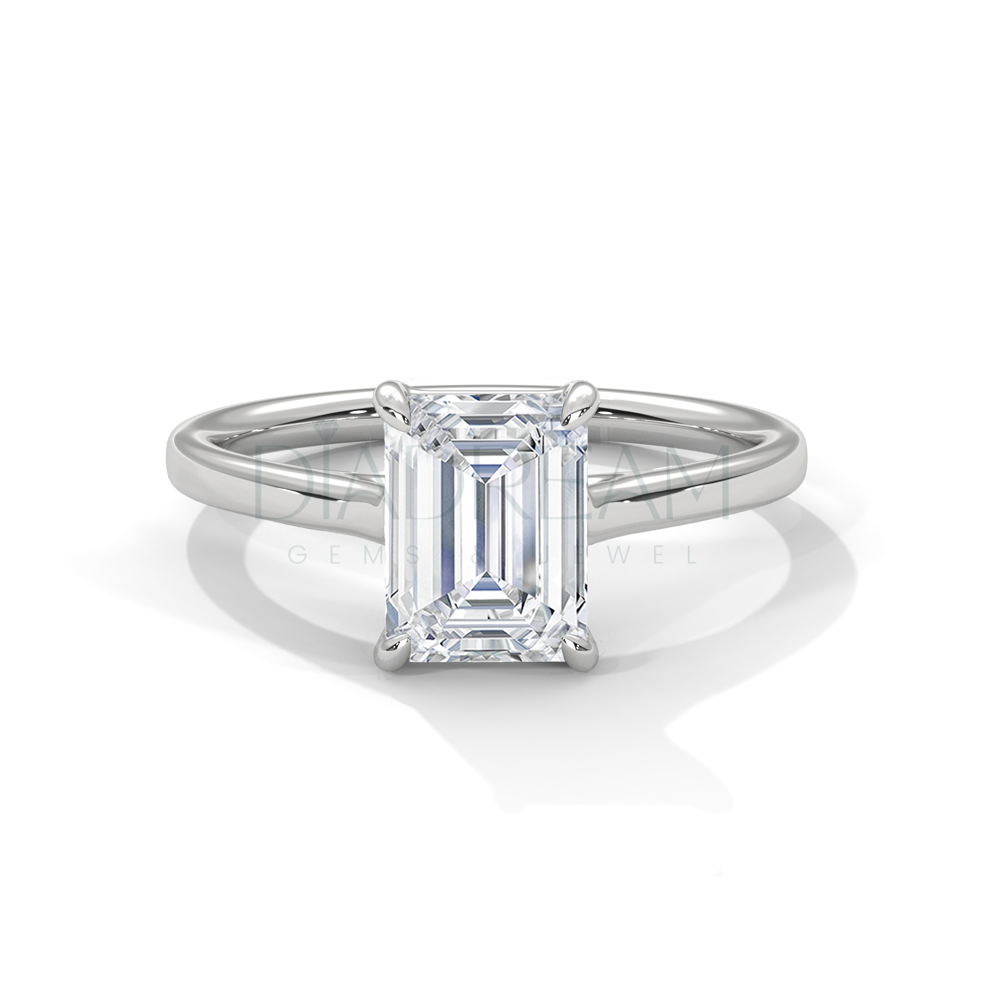 Elevate your style with the timeless elegance of our Emerald Cut Moissanite Ring. This exquisite piece showcases a stunning 2.00-carat (approx.) emerald-cut moissanite, renowned for its exceptional brilliance and fire. The colorless VVS clarity and ideal cut ensure a dazzling display of light, making it a captivating center stone.