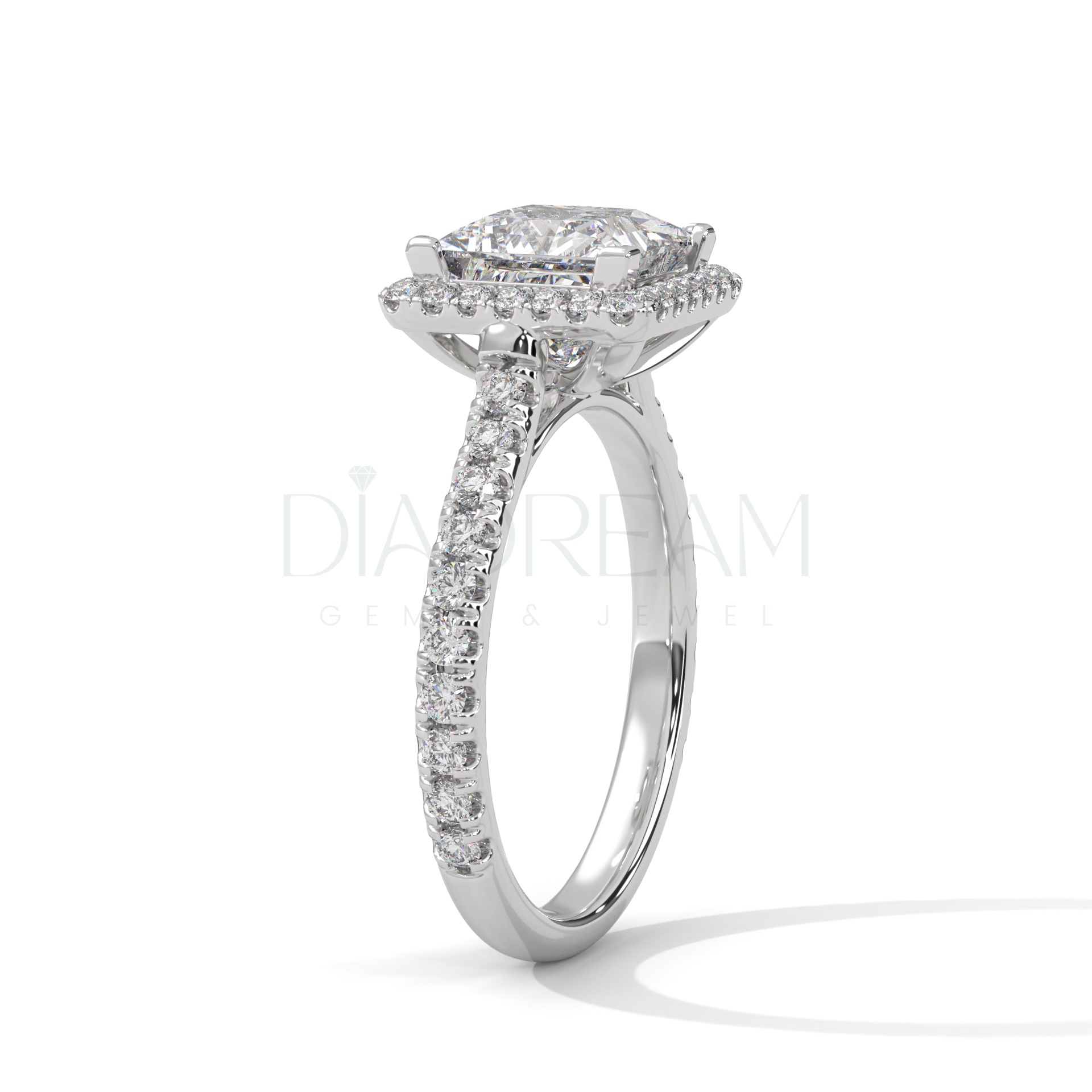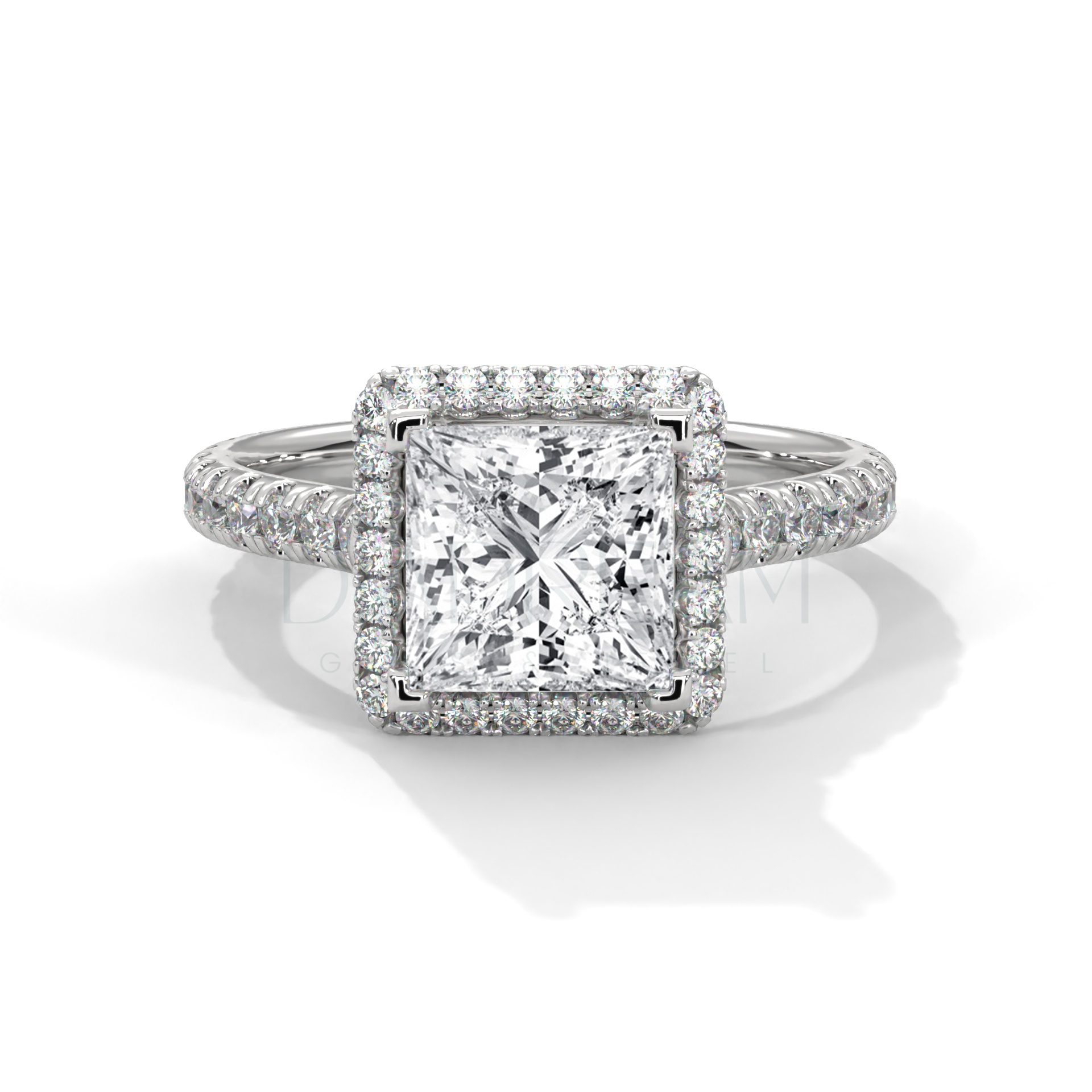 Experience the Dazzle: A 2 Carat Princess Cut Moissanite Halo and Pave Ring