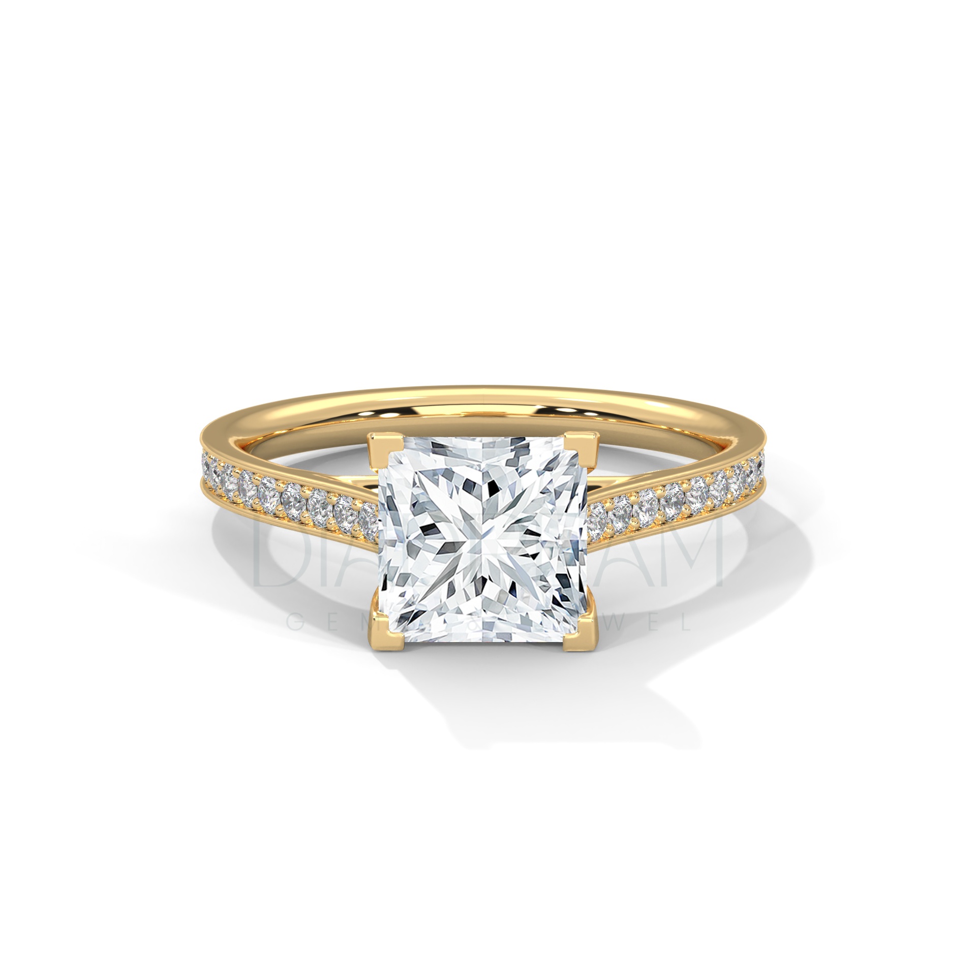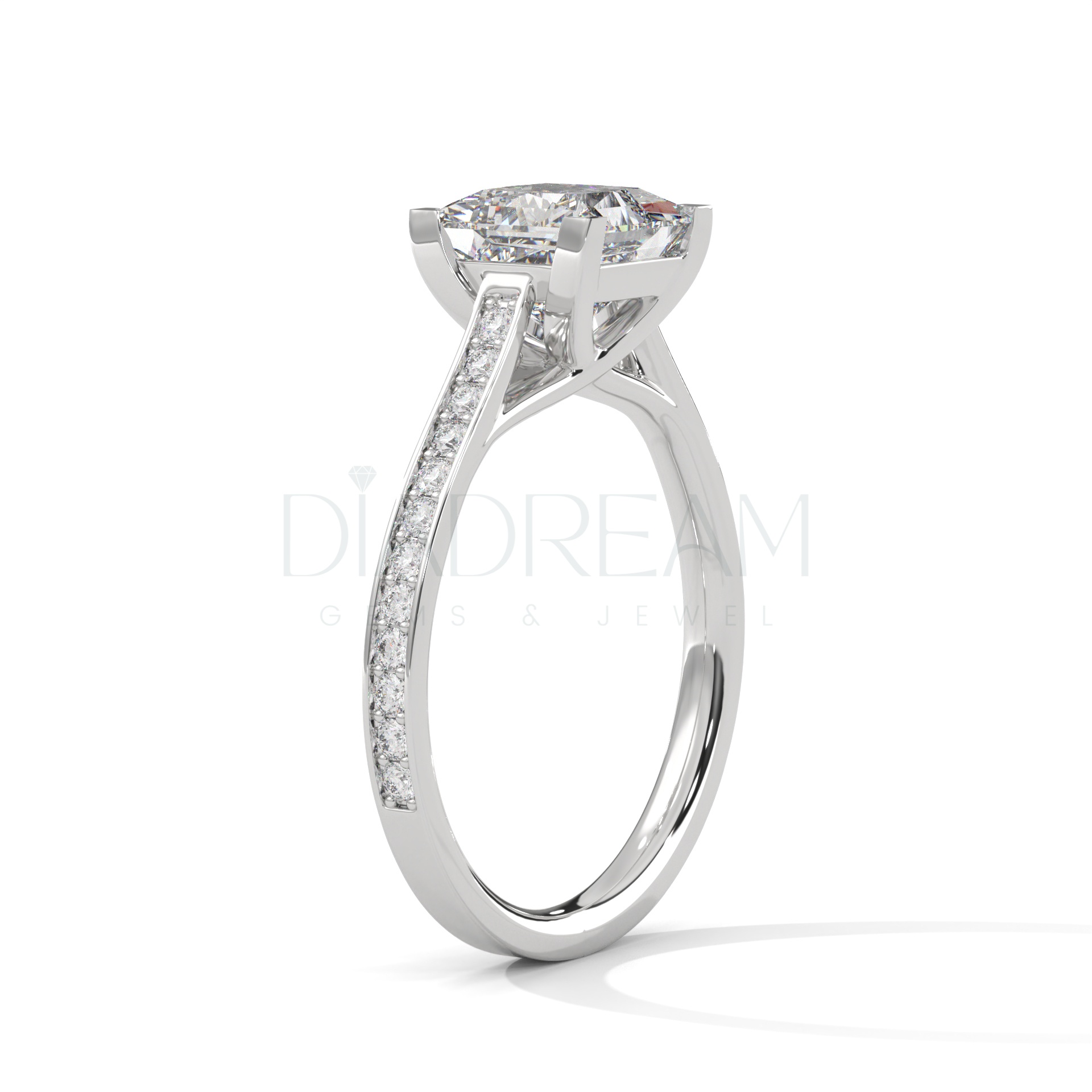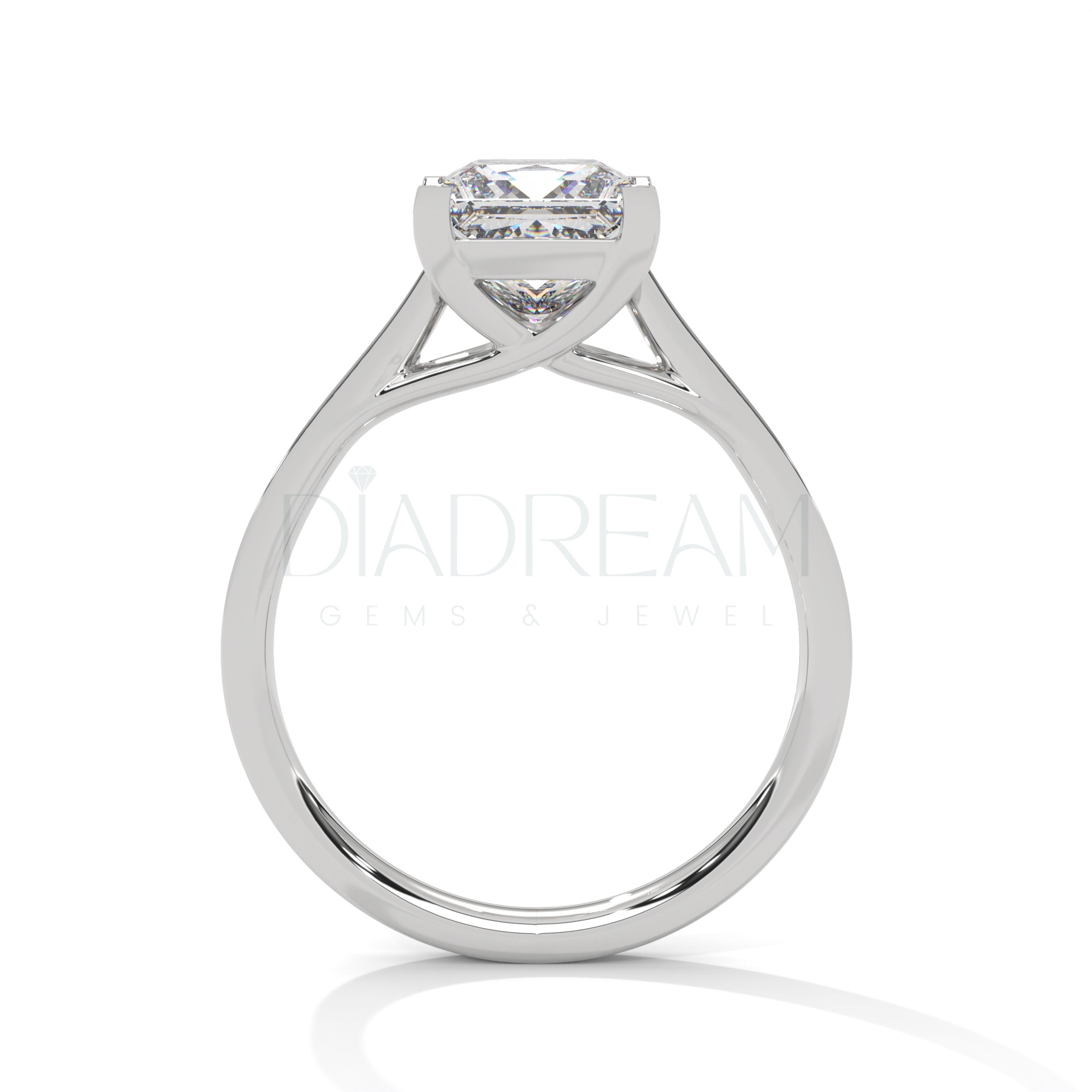 Choose your preferred metal, tone, and band width. Create a truly personalized 2 carat princess cut moissanite ring. Our skilled artisans will meticulously craft your ring. You’ll have a perfect fit and finish.