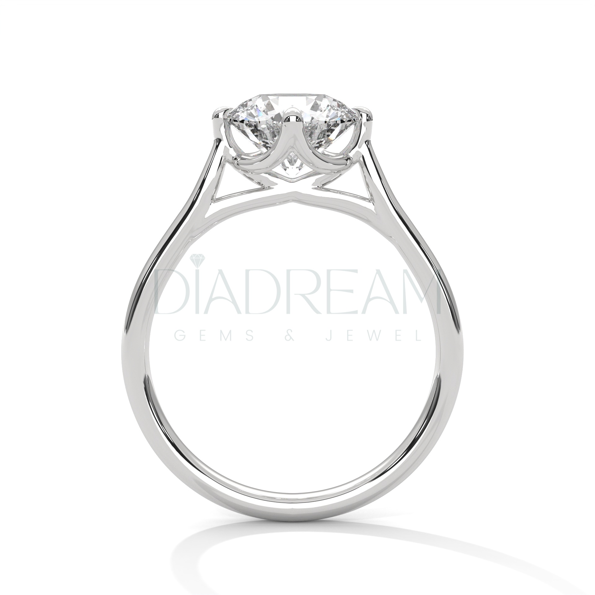 Our round-cut moissanite ring is a stunning piece of jewelry. Featuring a 2-carat (approx.) round-cut moissanite, this ring is a symbol of timeless elegance. The colourless, VVS clarity, and ideal cut of the stone ensure a dazzling display of light.