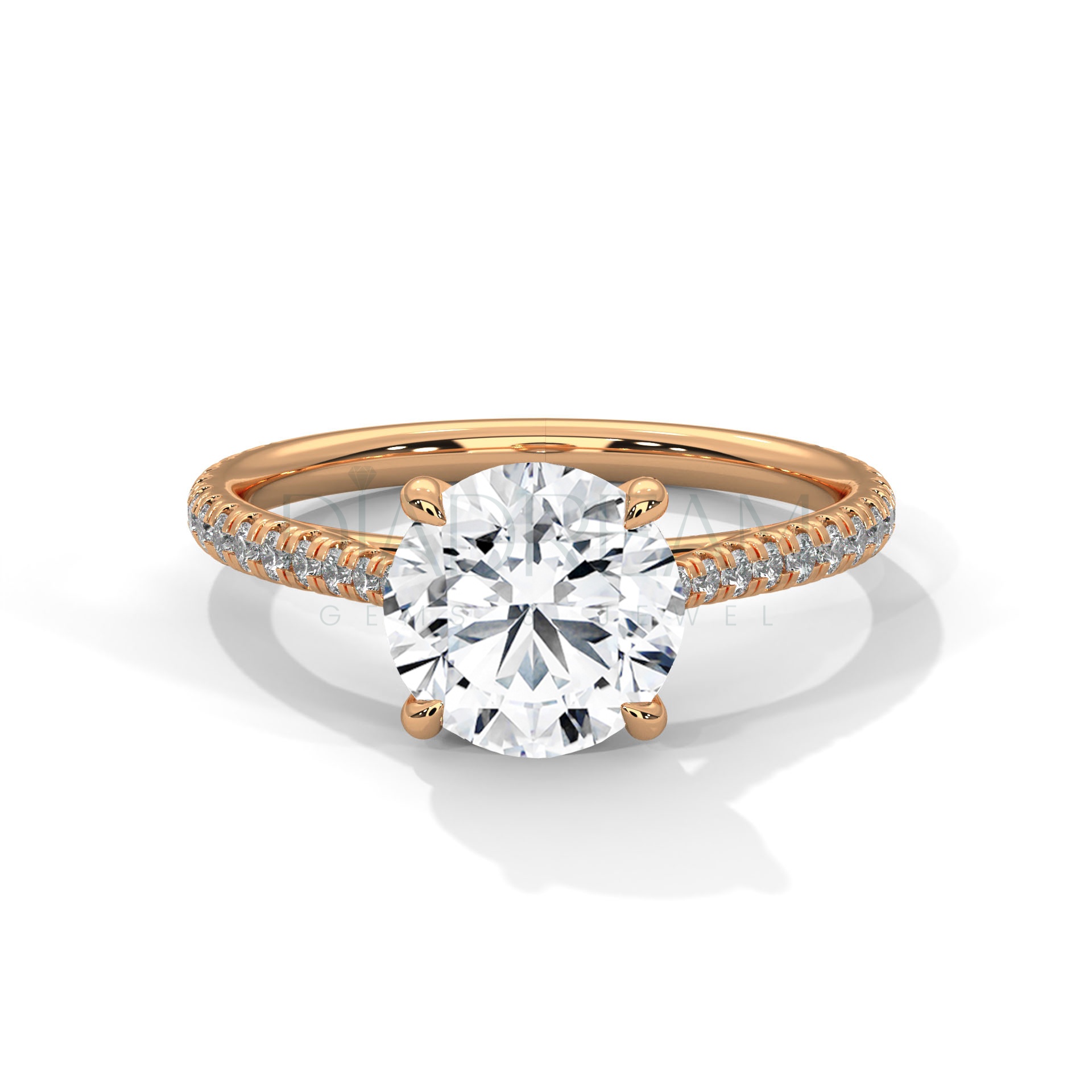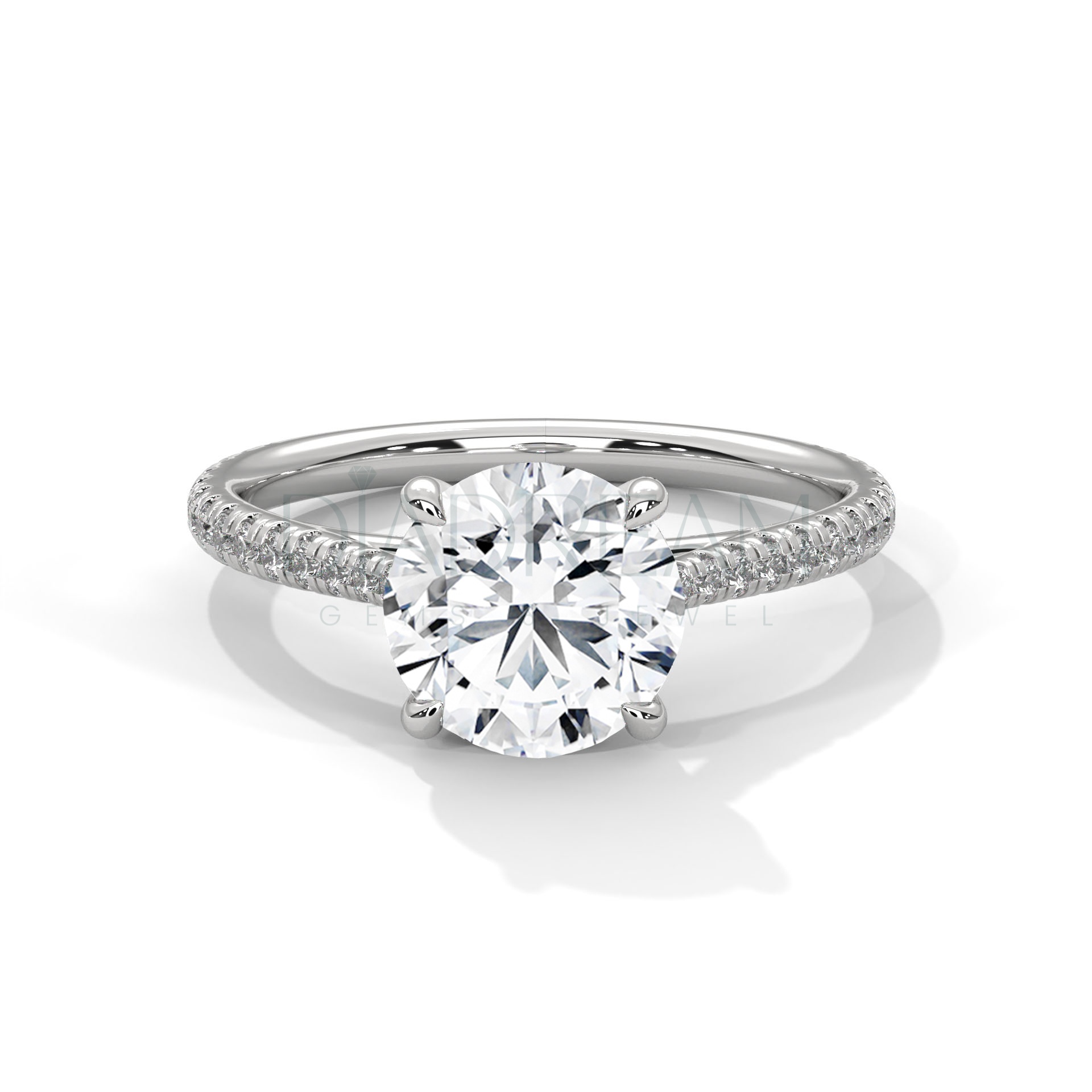 Imagine a ring that captures the essence of elegance and brilliance. This halo moissanite and cubic zirconia diamond ring is that very piece. It features a captivating 2.00-carat, round-cut center stone surrounded by a halo of smaller, sparkling diamonds.