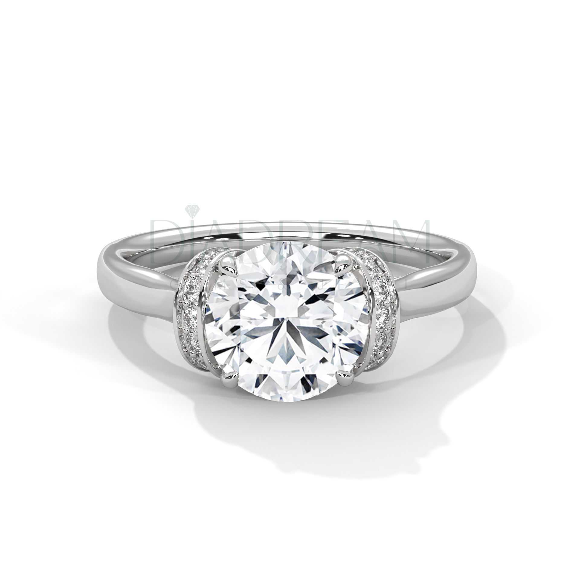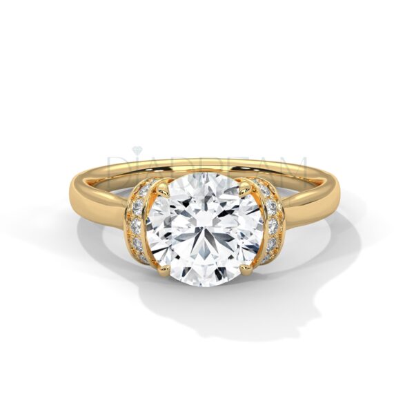 Our round-cut moissanite ring is a stunning piece of jewelry. Featuring a 2-carat (approx.) round-cut moissanite, this ring is a symbol of timeless elegance. The colourless, VVS clarity, and ideal cut of the stone ensure a dazzling display of light and Ethical jewelry.