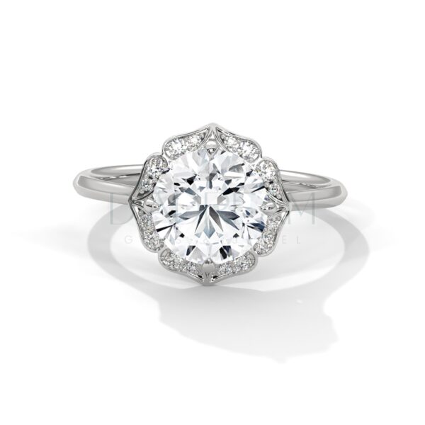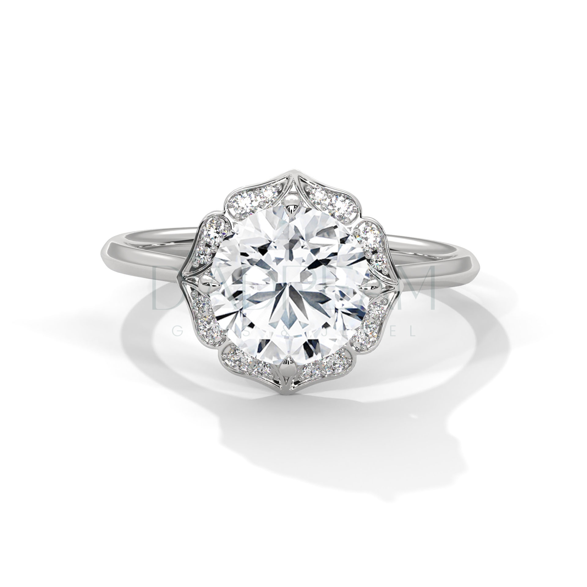 Experience timeless elegance with our Round Cut Moissanite Ring. This exquisite piece, meticulously crafted by our skilled artisans, showcases a stunning 2.00-carat (approx.) round-cut moissanite, renowned for its exceptional brilliance and fire. The colorless VVS clarity and immaculate cut ensure a dazzling display of light.