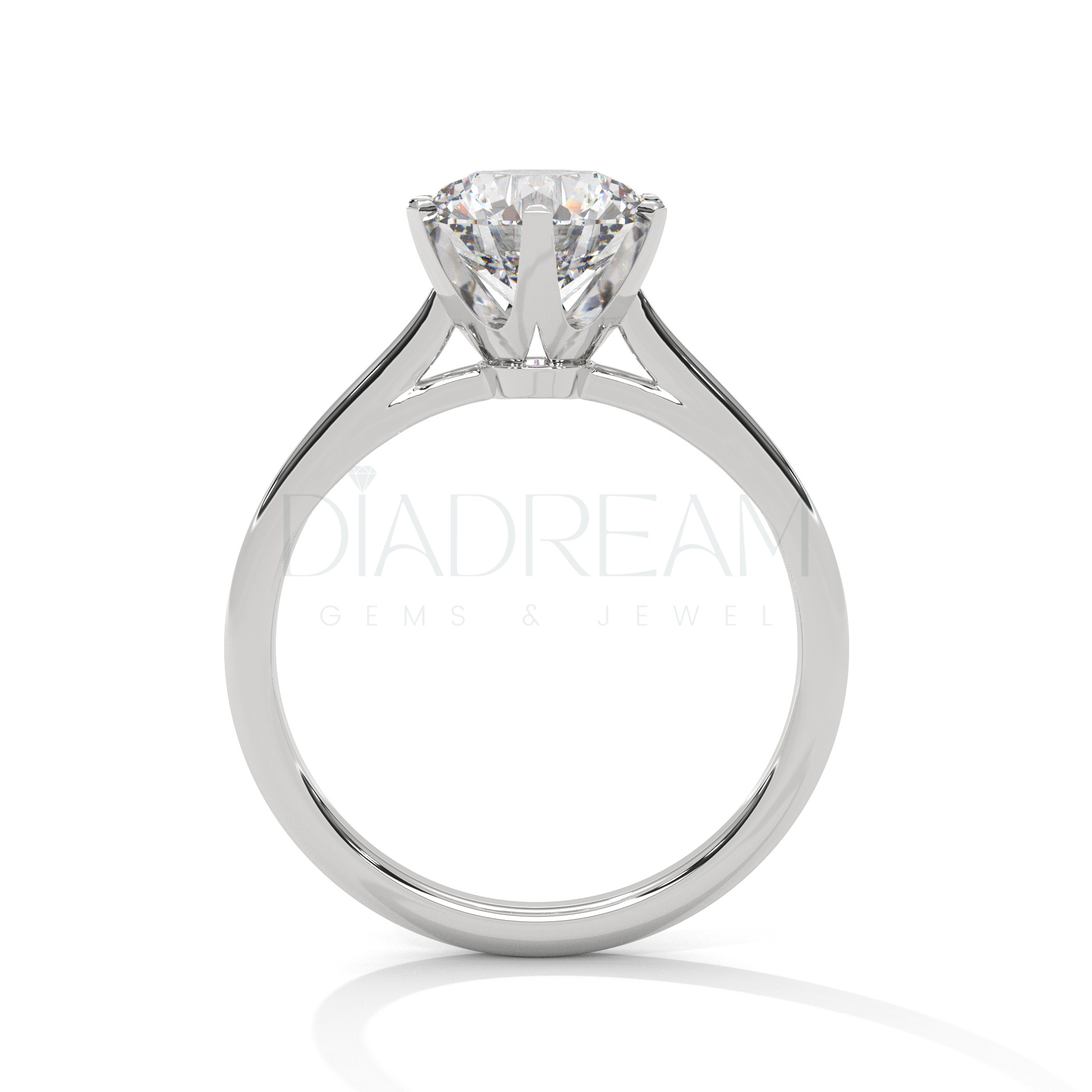 Choose your preferred metal, tone, and band width. Create a truly personalized 2 carat round cut moissanite solitaire ring. Our skilled artisans will meticulously craft your ring. You’ll have a perfect fit and finish.