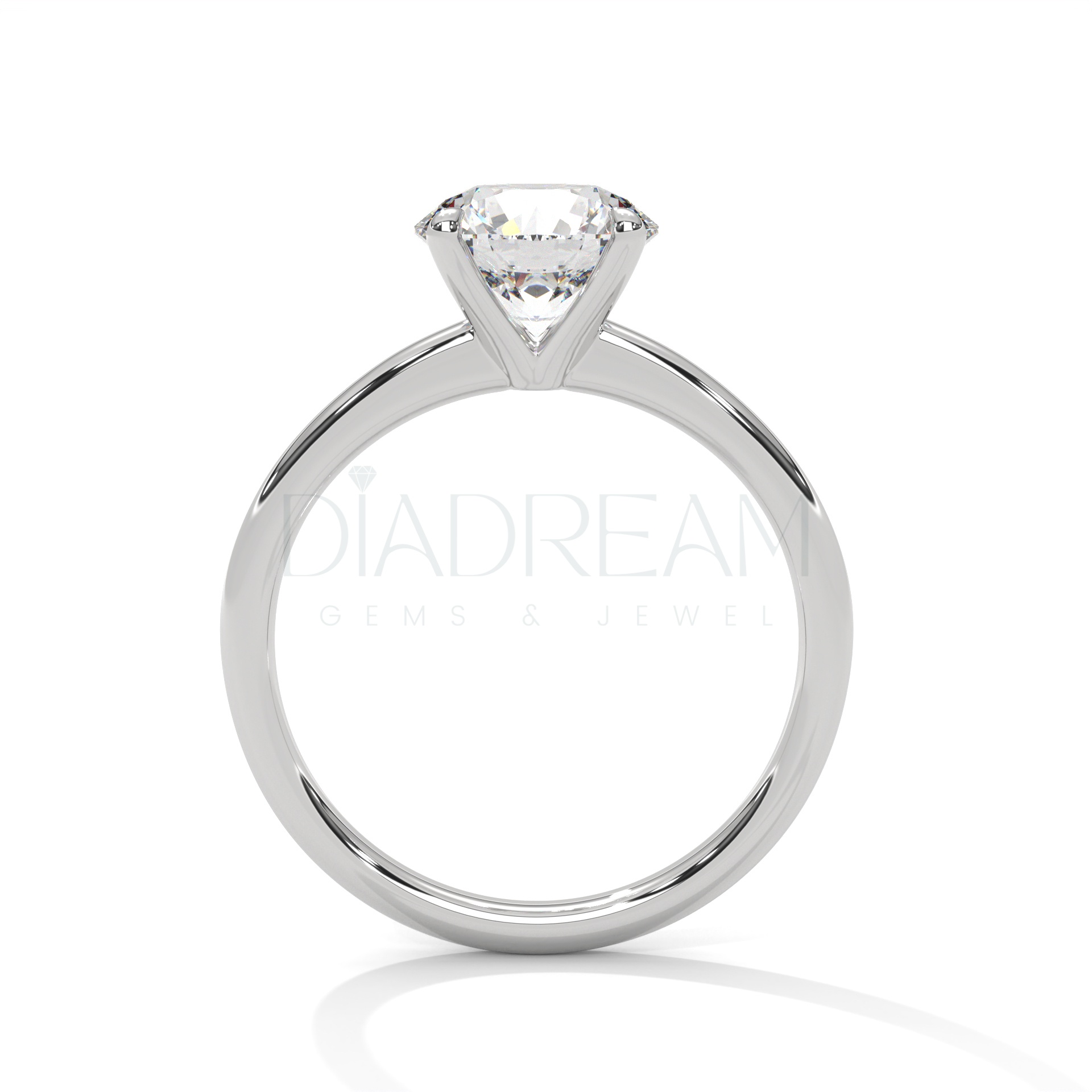 Choose your preferred metal, tone, and band width. Create a truly personalized 2 carat round cut moissanite solitaire ring. Our skilled artisans will meticulously craft your ring. You’ll have a perfect fit and finish.