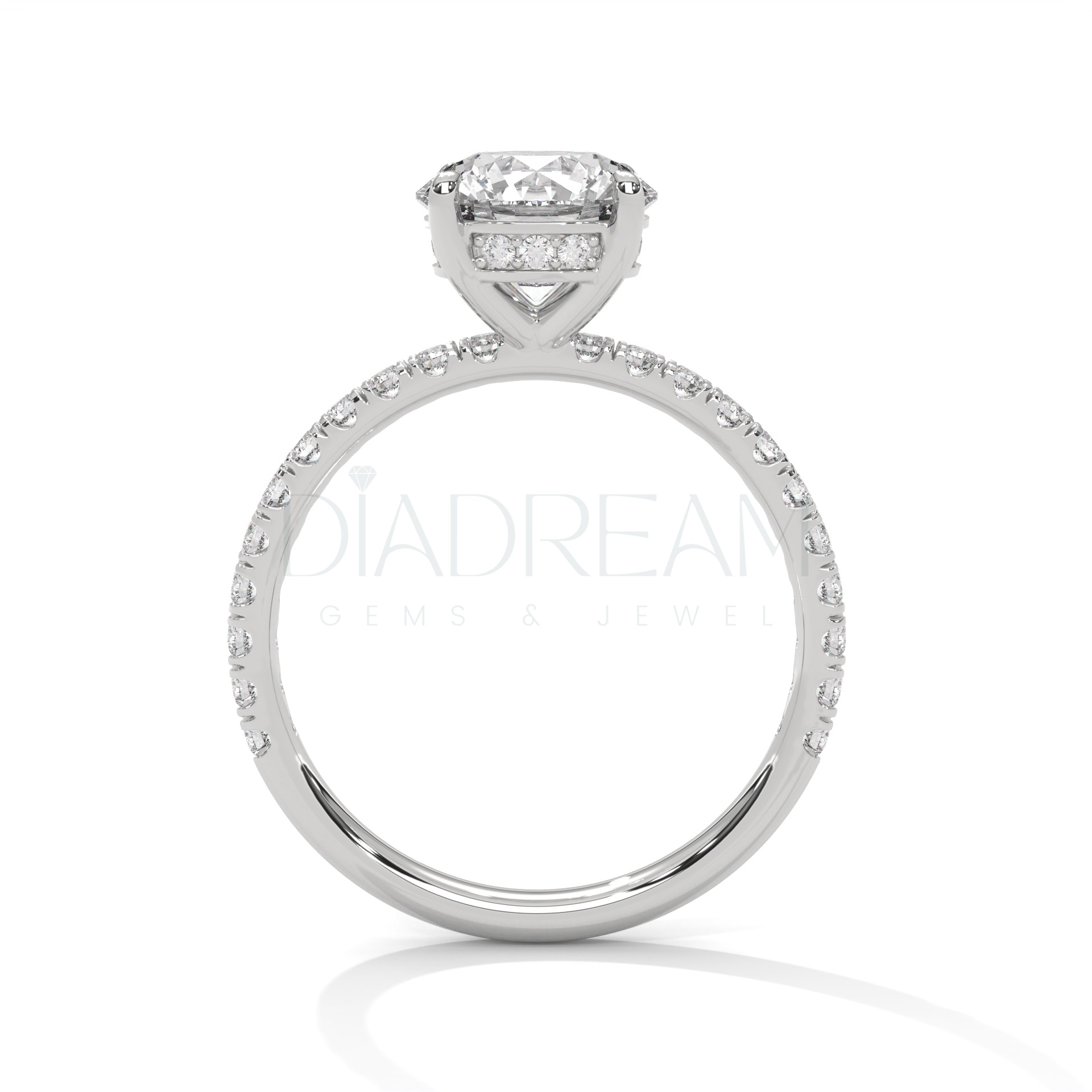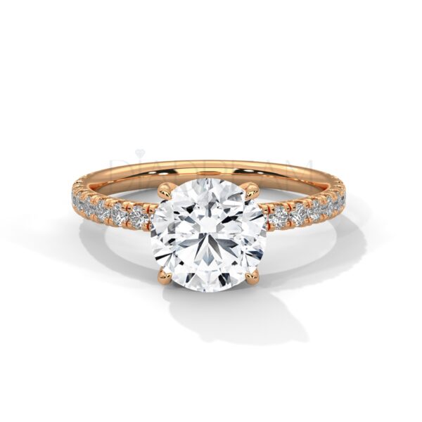 Choose your preferred metal, tone, and band width to create a truly personalized 2 carat round cut moissanite ring. Our skilled artisans will meticulously craft your ring to your exact specifications.