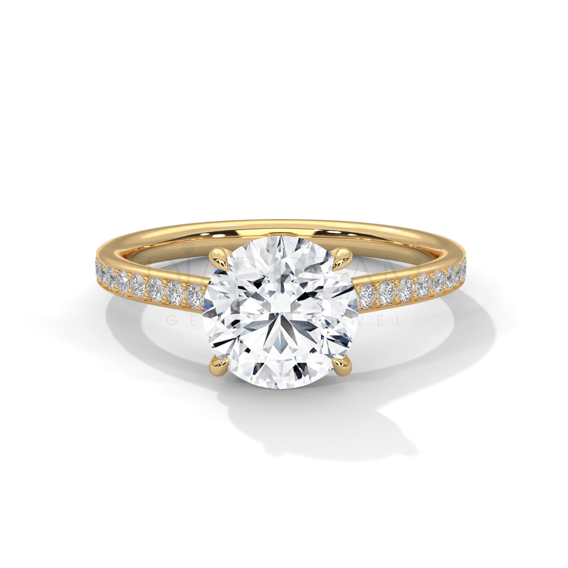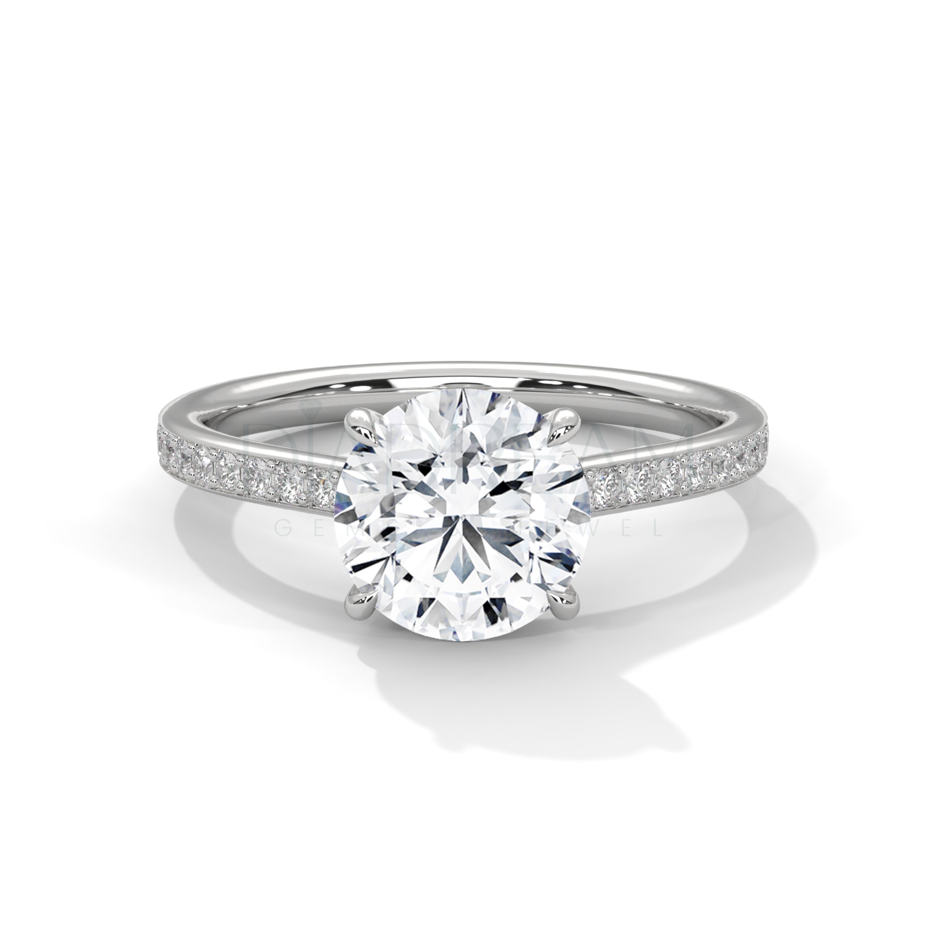 Choose your preferred metal, tone, and band width. Create a truly personalized 1.5 carat round cut moissanite ring. Our skilled artisans will meticulously craft your ring. You’ll have a perfect fit and finish.
