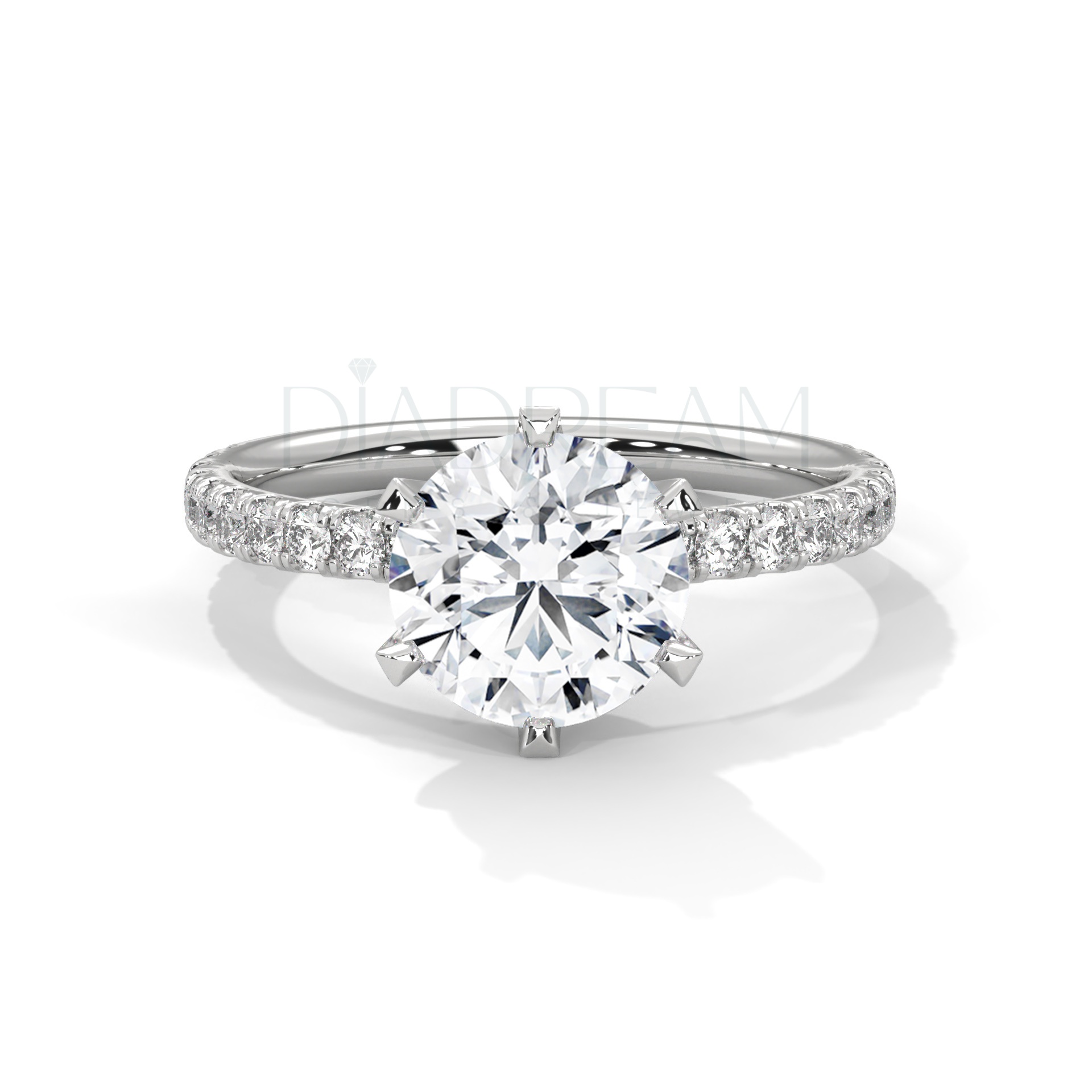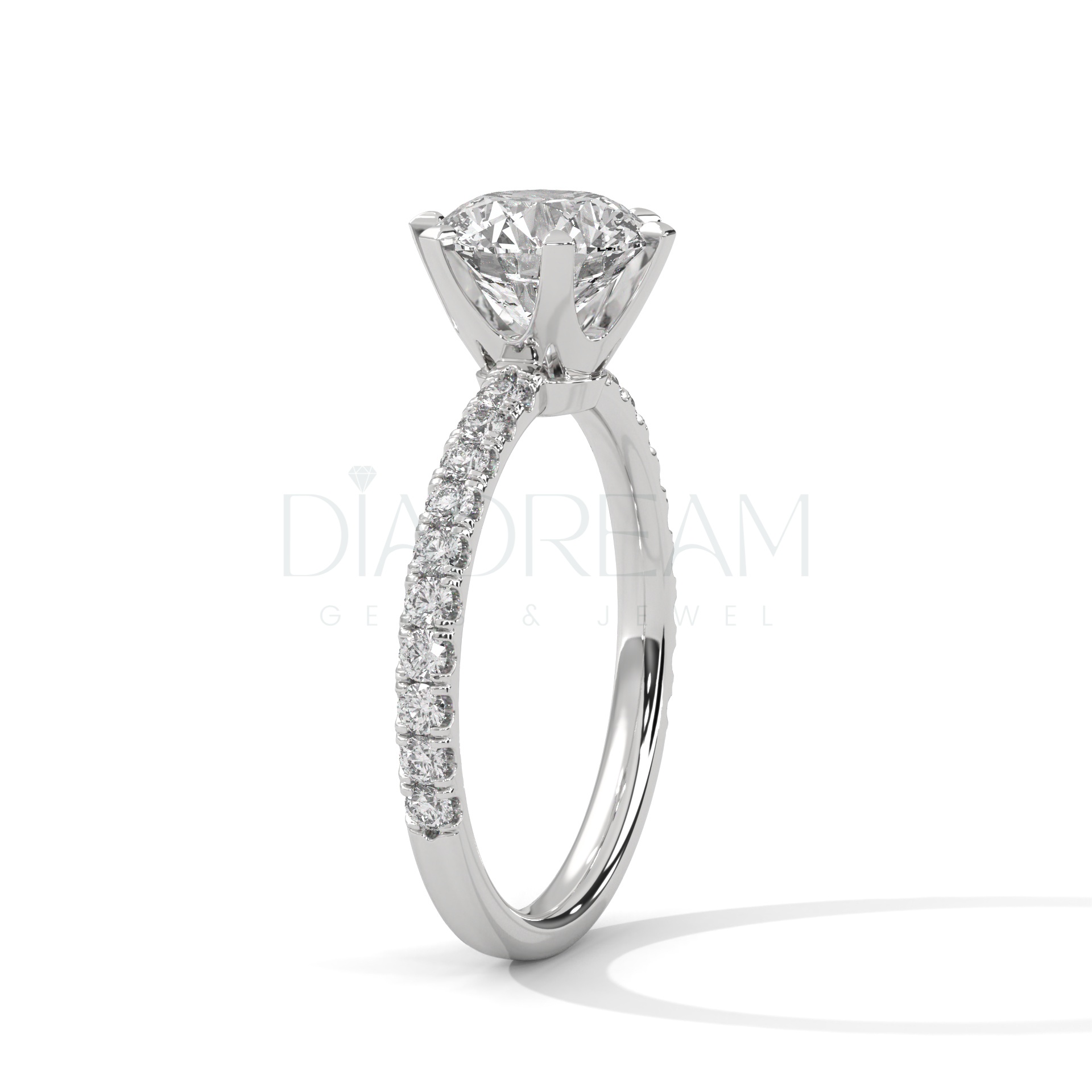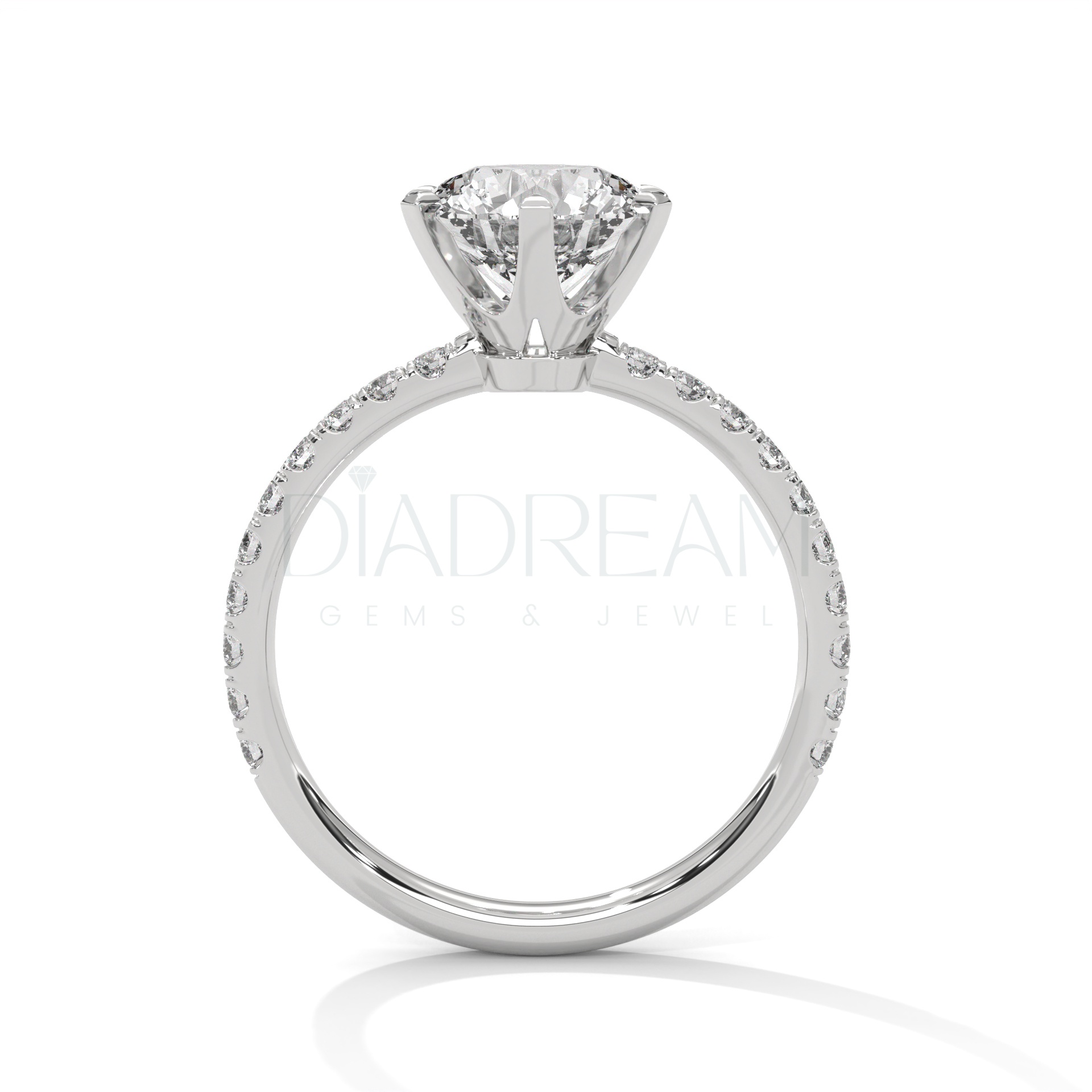 Choose your preferred metal, tone, and band width. Create a truly personalized 2 carat round cut moissanite ring. Our skilled artisans will meticulously craft your ring. You’ll have a perfect fit and finish.