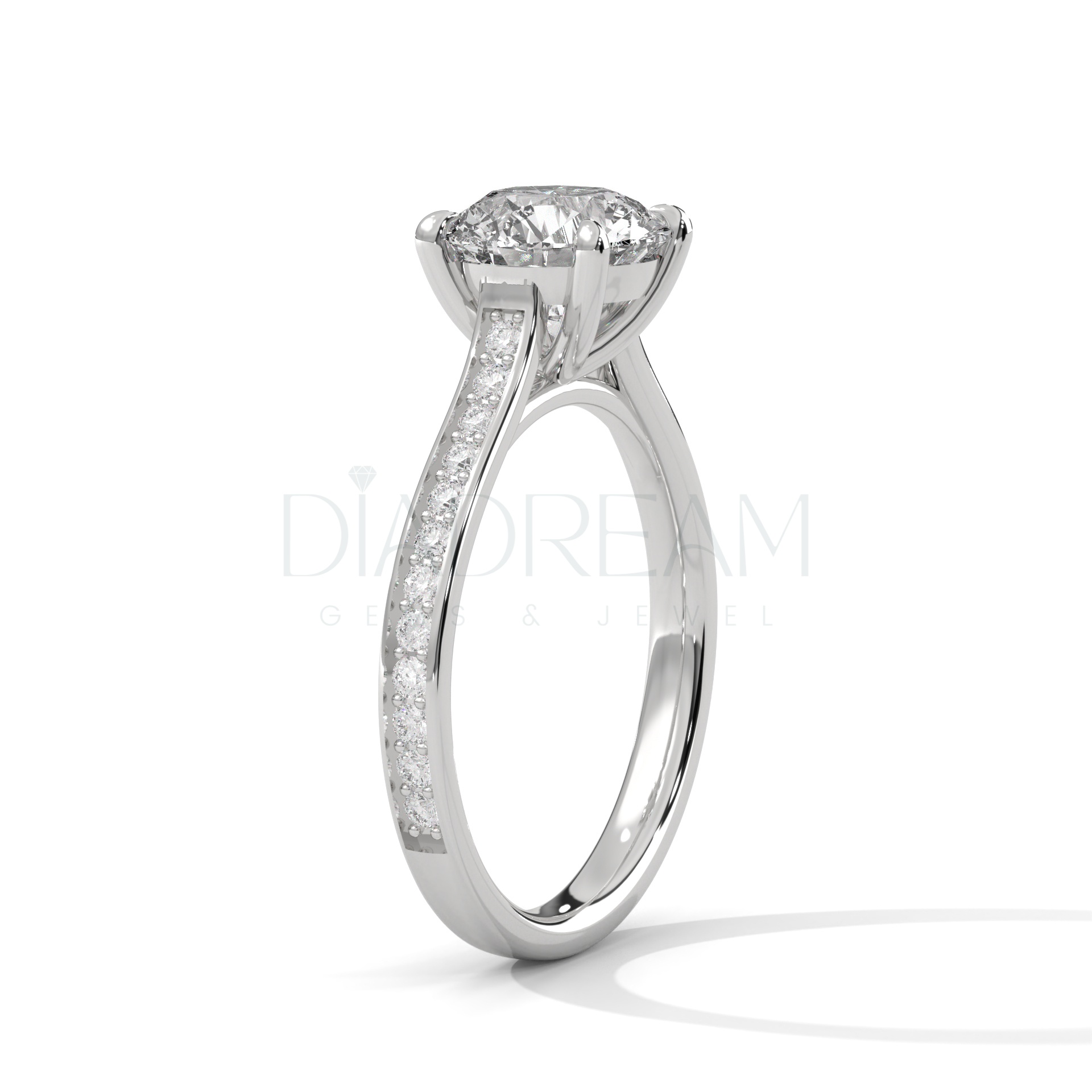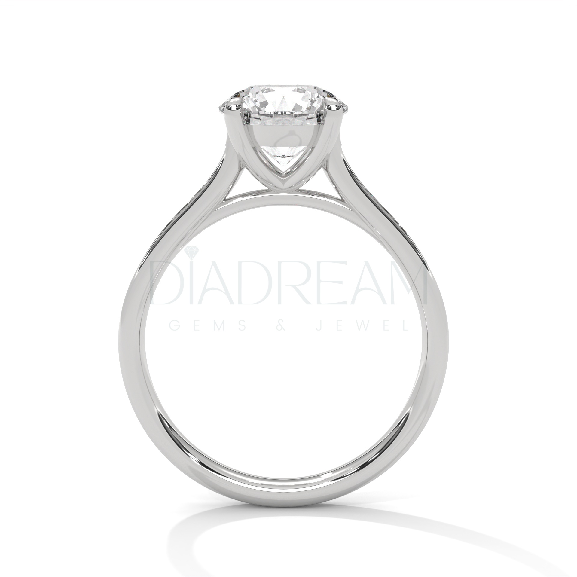 Choose your preferred metal, tone, and band width. Create a truly personalized 2 carat round cut moissanite ring. Our skilled artisans will meticulously craft your ring. You’ll have a perfect fit and finish.