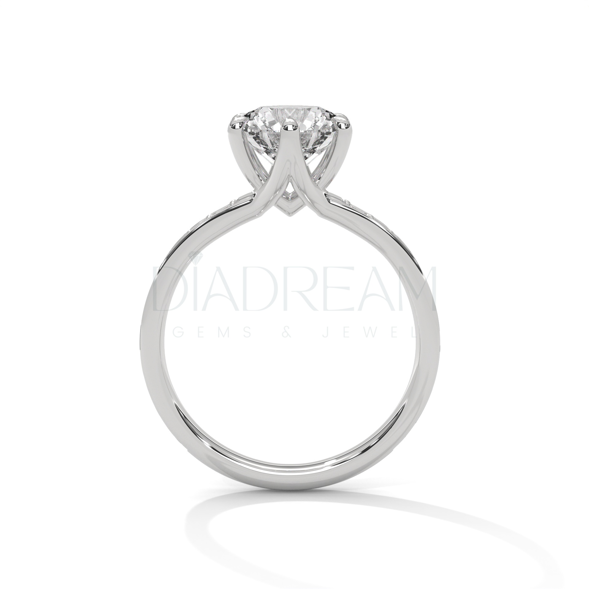 Choose your preferred metal, tone, and band width. Create a truly personalized 2 carat round cut moissanite ring. Our skilled artisans will meticulously craft your ring. You’ll have a perfect fit and finish.