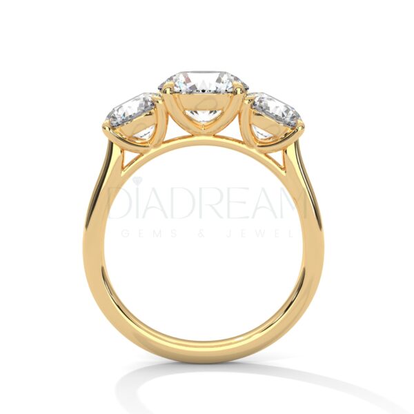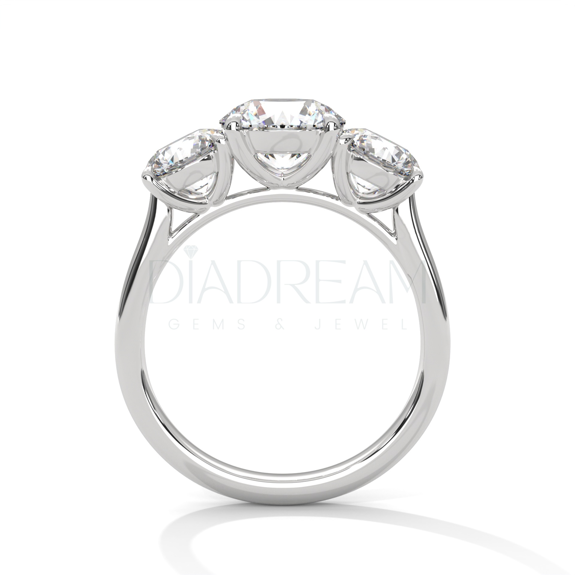 Indulge in the brilliance of our round cut moissanite three stone ring, a masterpiece of craftsmanship and elegance. Showcasing a dazzling 2.00 carat (approx.) round-cut moissanite, this ring is a symbol of timeless elegance and sophistication. The colorless, VVS clarity, and ideal cut of the moissanite ensure a breathtaking display of light and fire.